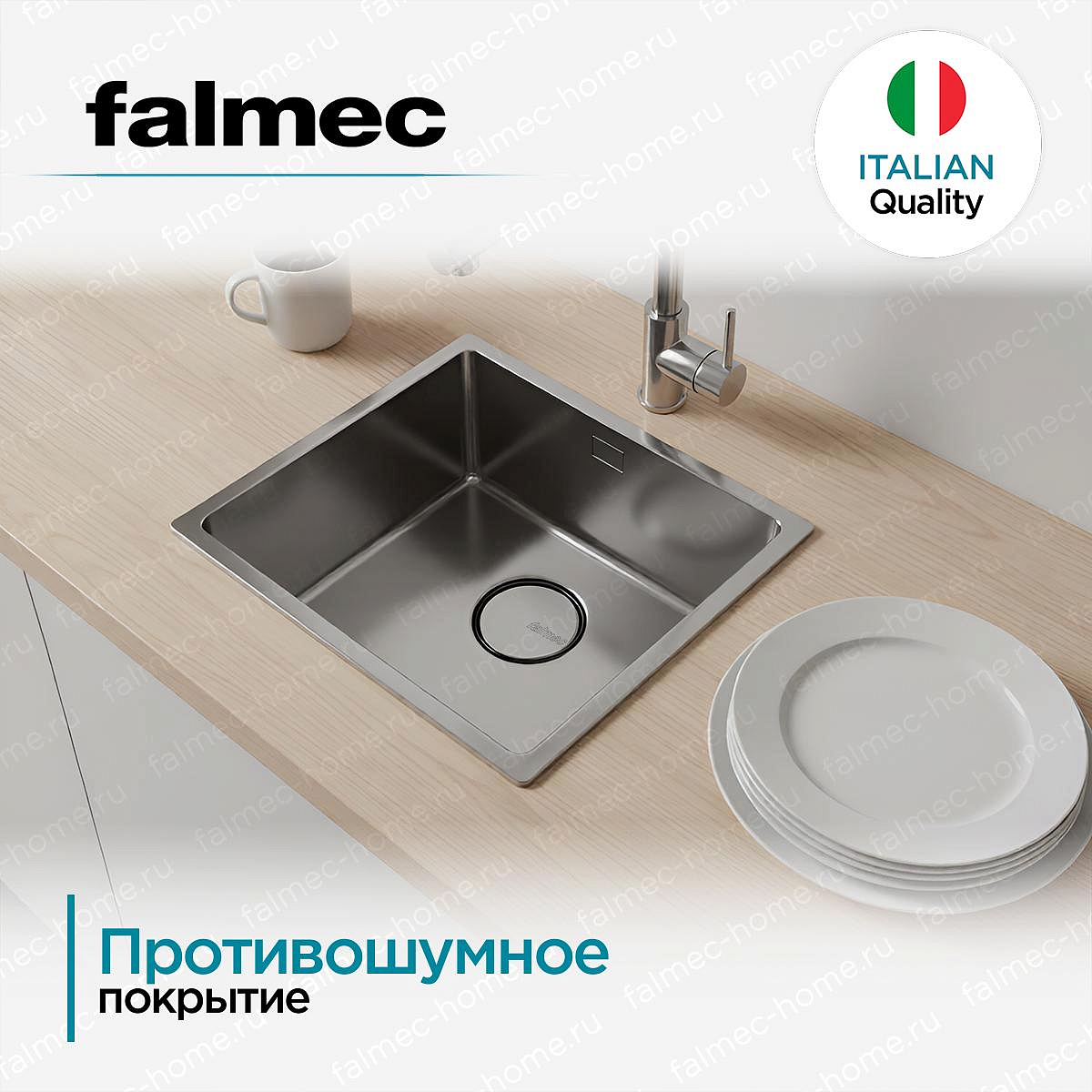 Внутренние углы с радиусом 12 мм обеспечивают легкость ухода и элегантный вид. Особая система слива Falmec делает мойку узнаваемой с первого взгляда.