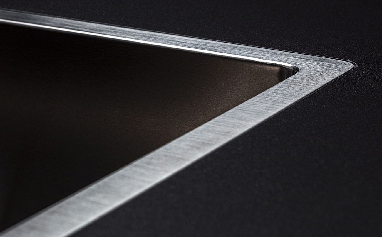 Внутренние углы с радиусом 12 мм обеспечивают легкость ухода и элегантный вид. Особая система слива Falmec делает мойку узнаваемой с первого взгляда.