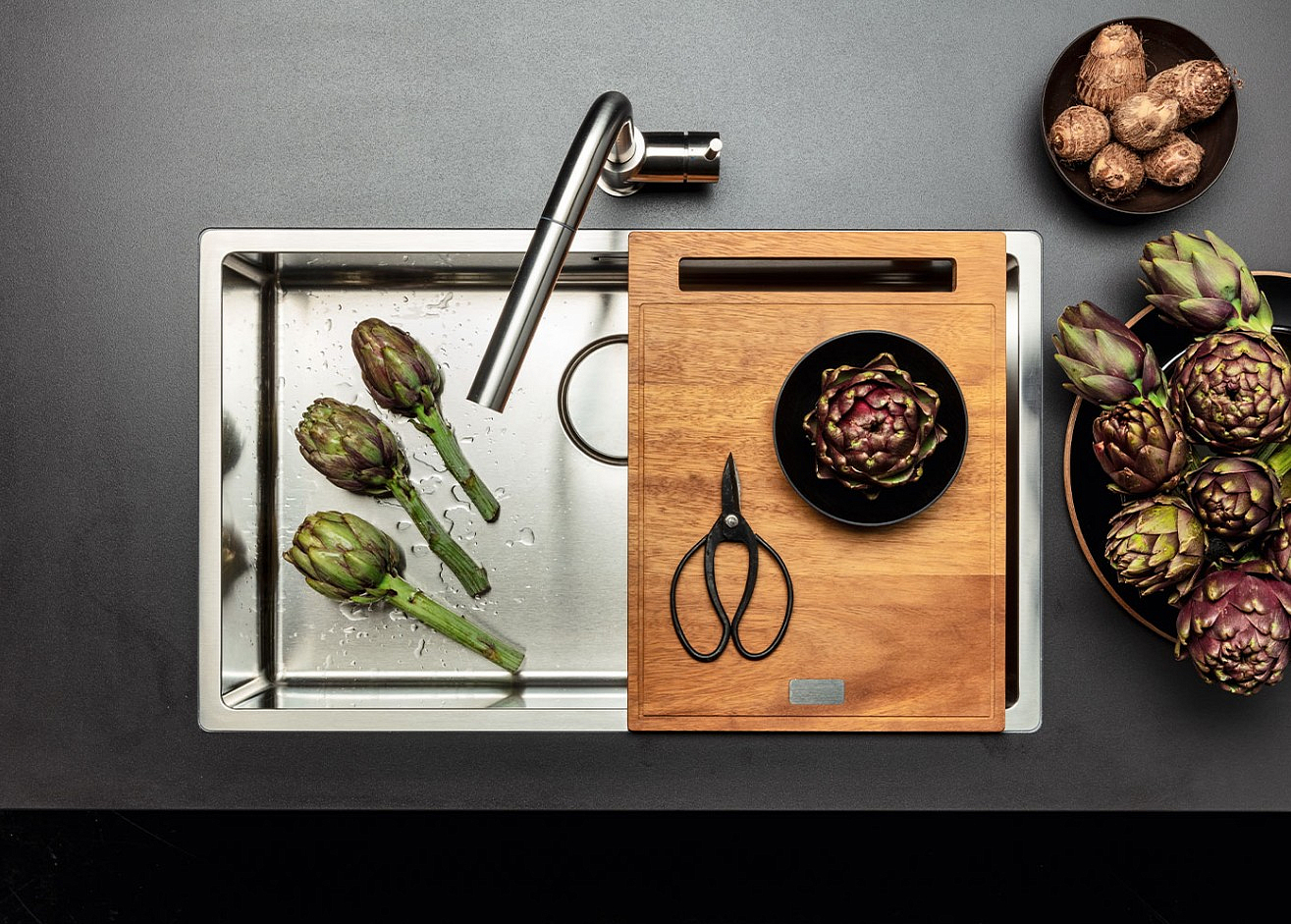 Бесшовная дренажная система — это современная технология в устройстве кухонных моек, разработанная для более эффективного и гигиеничного удаления воды с их поверхности. В отличие от привычной системы со сливным отверстием в центре, такая система выполнена в виде плавного и практически невидимого канала, который обычно расположен по краю раковины — а в некоторых моделях даже по всему её периметру.