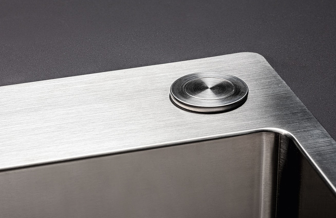 Автоматический сливной клапан с круглой кнопкой предлагается в различных вариантах отделки и устанавливается по умолчанию на мойки Garda, а также доступен для других моделей серии Water.