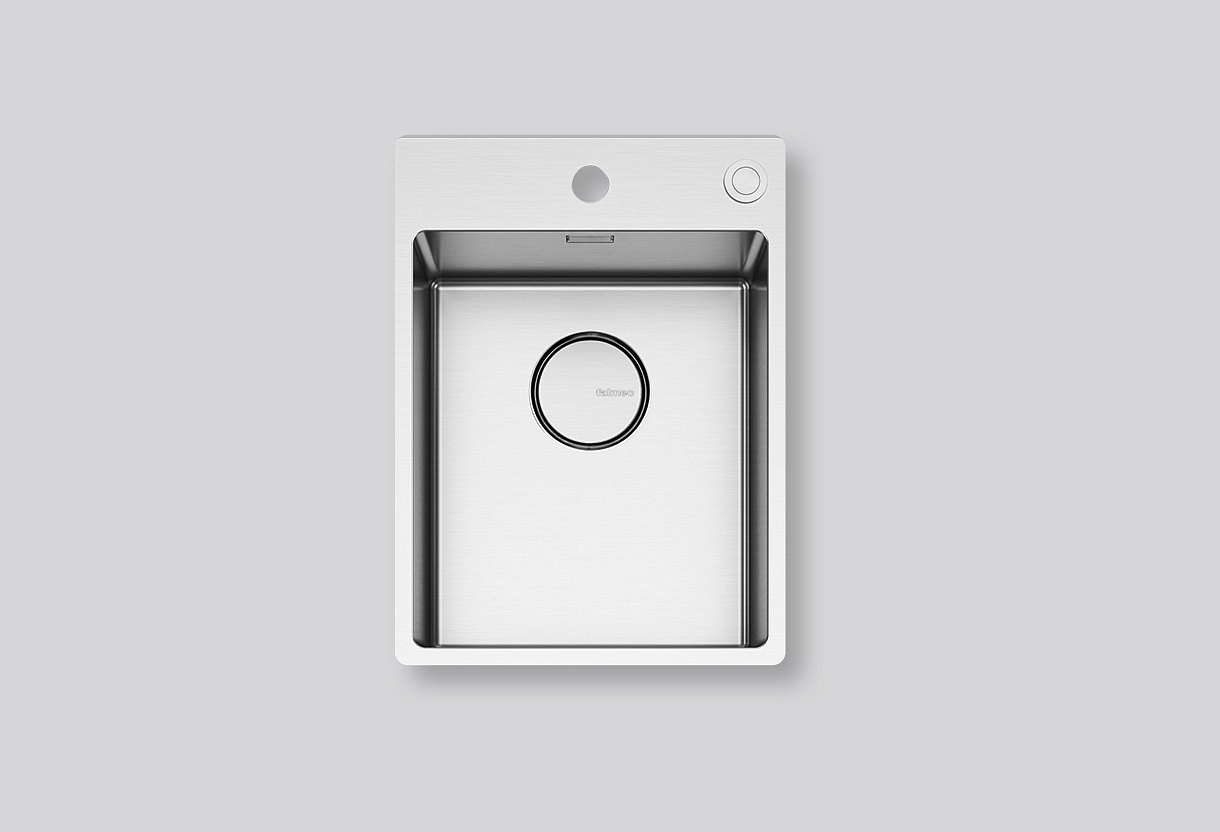 Главные особенности: инновационный встроенный сливной клапан на краю мойки и эксклюзивная система слива Falmec с крышкой.