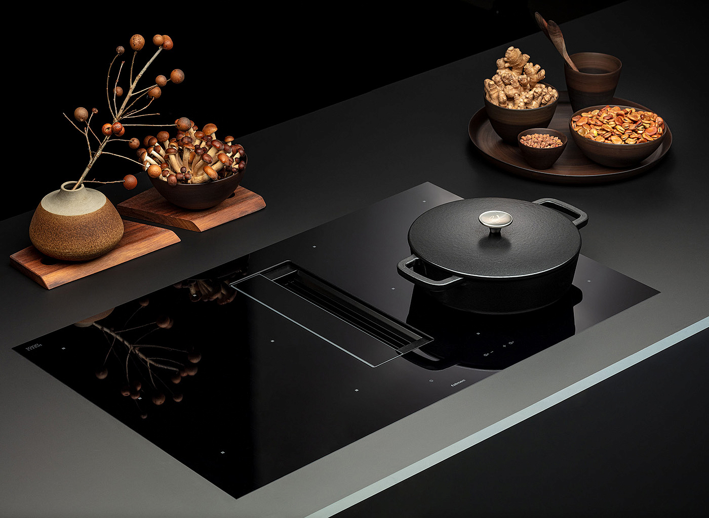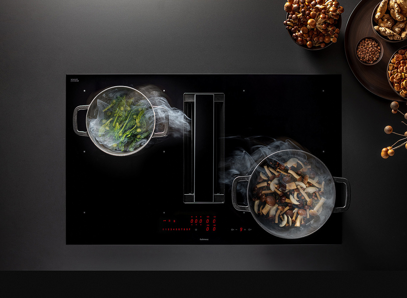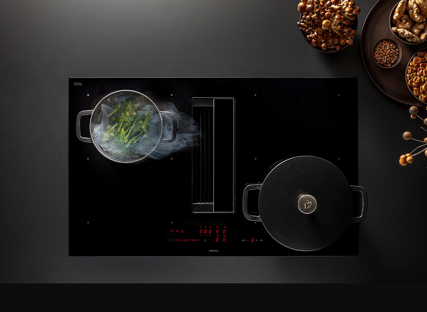 Прибор оснащен встроенной вытяжкой, которая обеспечивает эффективное удаление запахов и пара при приготовлении пищи. Вытяжка работает в режиме отвода и имеет 9 уровней мощности. Максимальная производительность устройства составляет 600 м³/ч, а уровень шума на максимальной скорости не превышает 69 дБ.