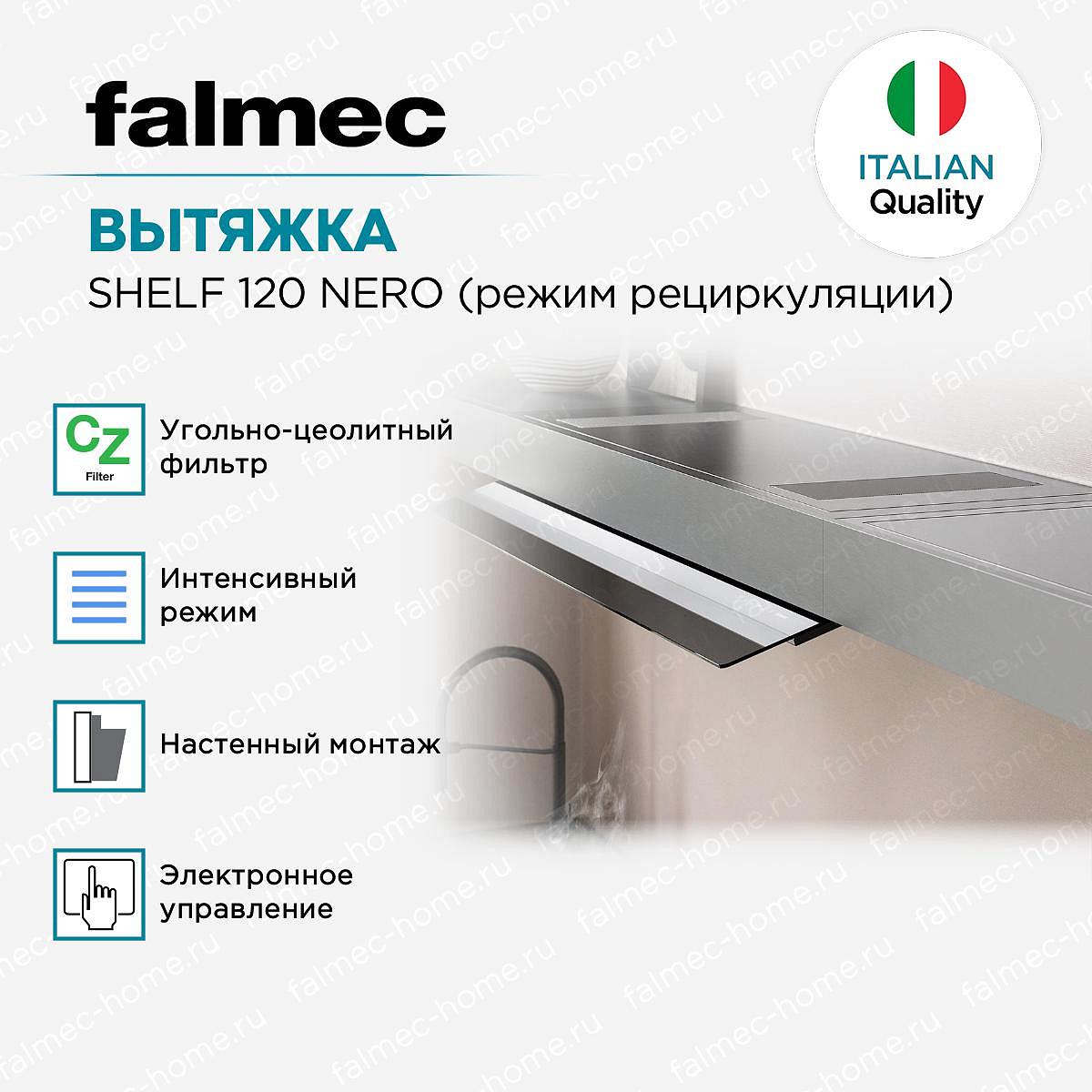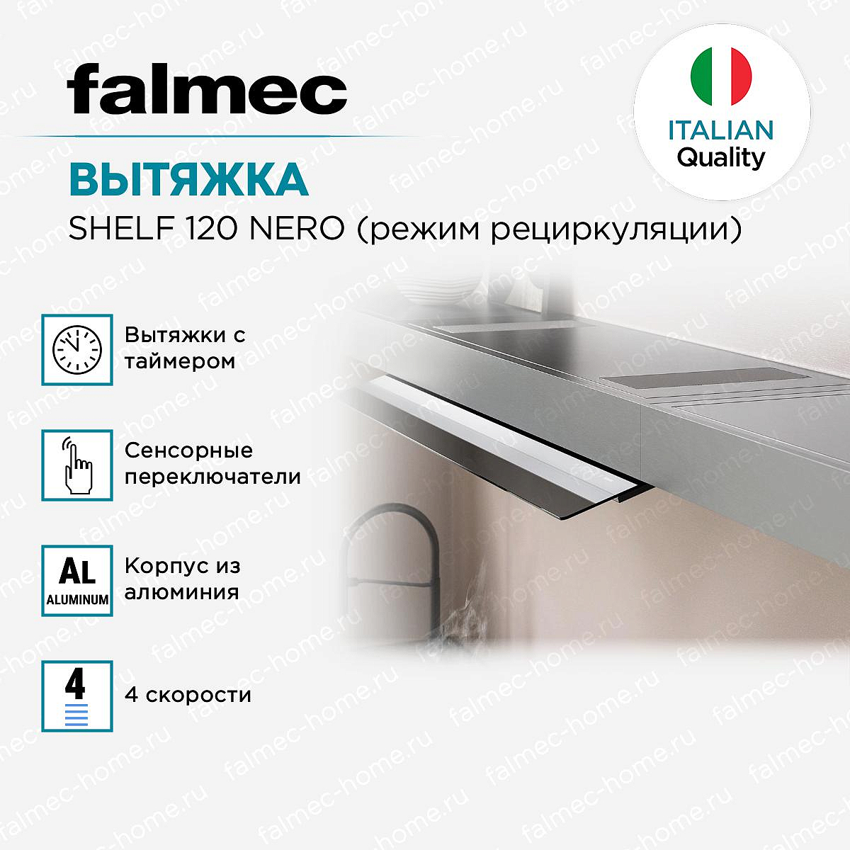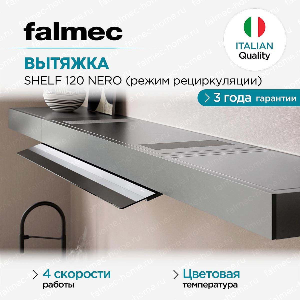 Вытяжка Falmec Shelf 120 Nero с режимом рециркуляции — это высококачественное устройство, созданное итальянскими мастерами. Изготовленная из прочного сатинированного алюминия и дымчатого стекла, эта техника обладает элегантным черным дизайном, который идеально впишется в интерьер любой современной кухни. Продуманная конструкция с выдвижным козырьком и настенным типом монтажа, позволяет максимально эффективно использовать пространство.