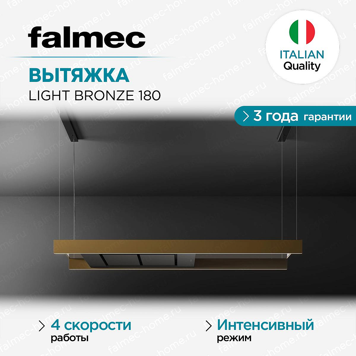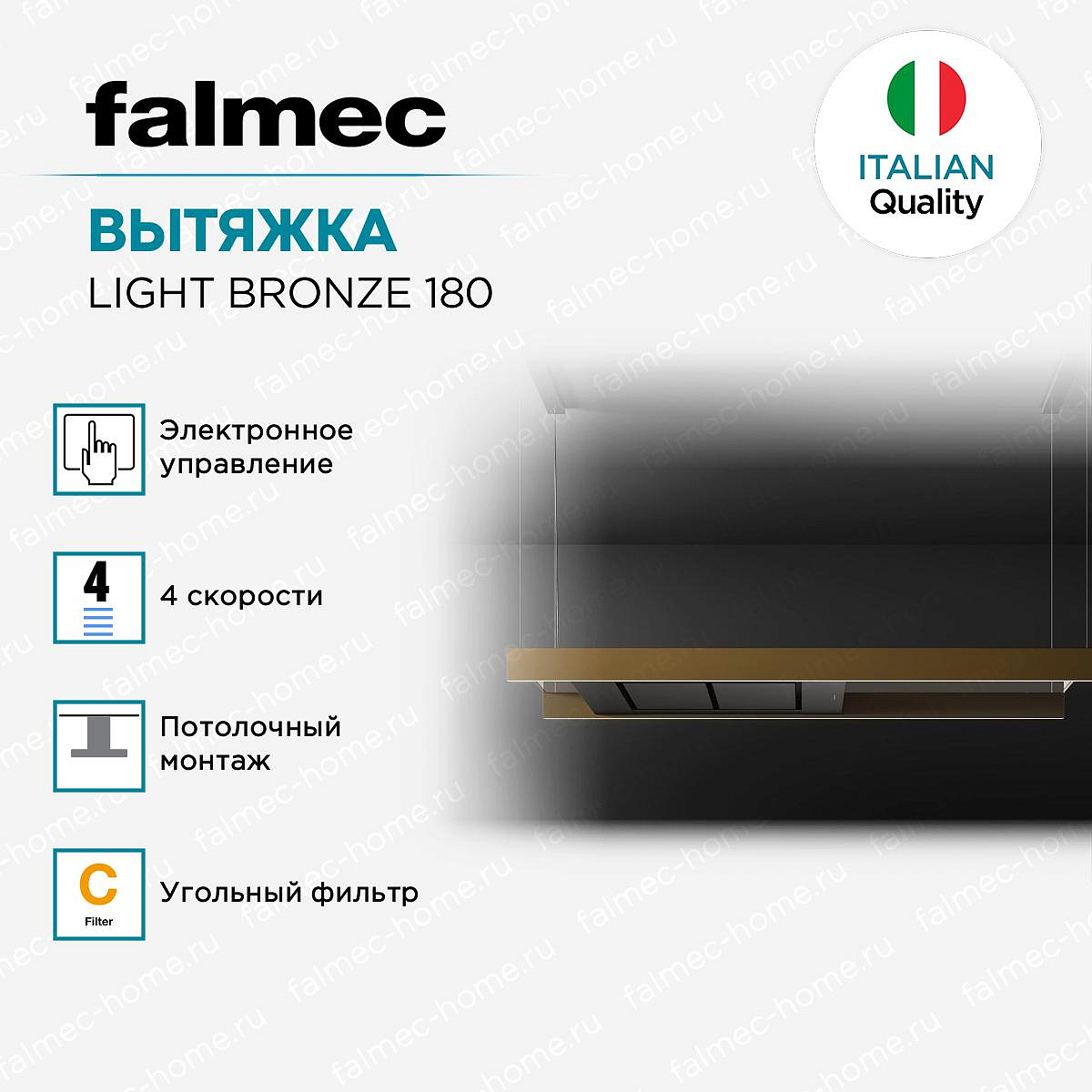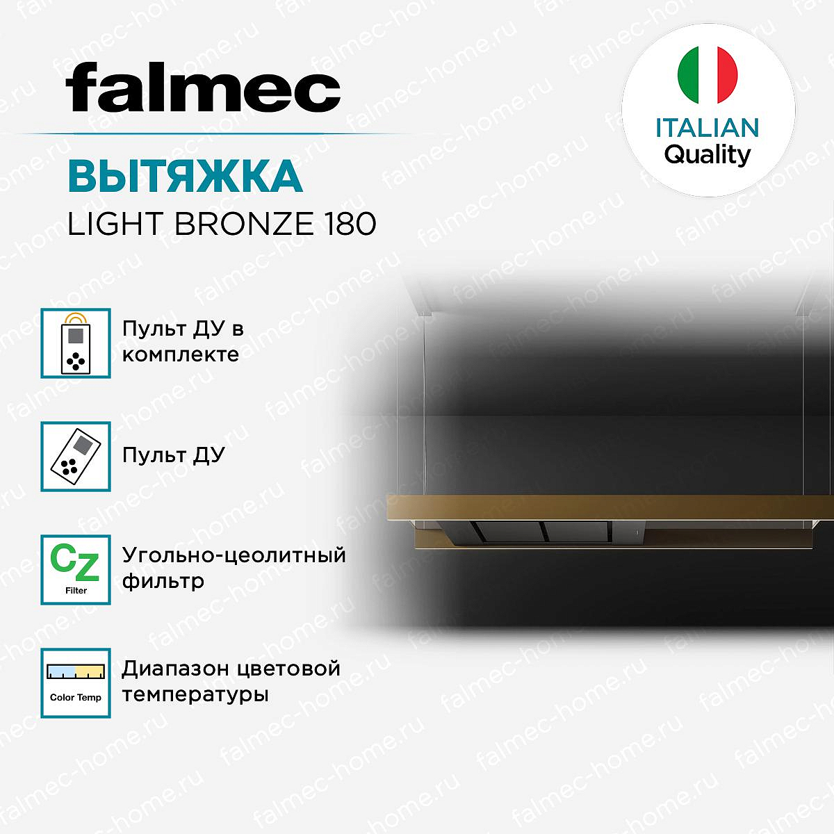 Вытяжка Falmec Light Bronze 180 — это синтез итальянского дизайна, инженерной точности и практичной функциональности. Бронзовое исполнение, скрытая мощность и гибкость установки делают её идеальным выбором для тех, кто ценит роскошь без излишеств.