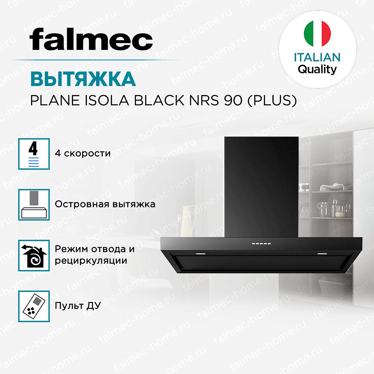 Вытяжка Falmec Plane ISOLA BLACK NRS 90 Plus - это высококачественное итальянское оборудование, которое сочетает в себе элегантный дизайн и передовые технологии. Корпус модели выполнен из нержавеющей стали AISI 304, что обеспечивает долговечность и надежность использования. Благодаря своей стильной отделке и современному виду, данная модель станет изысканным дополнением любого интерьера.