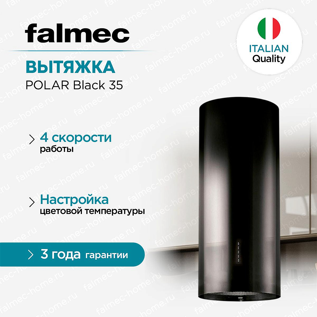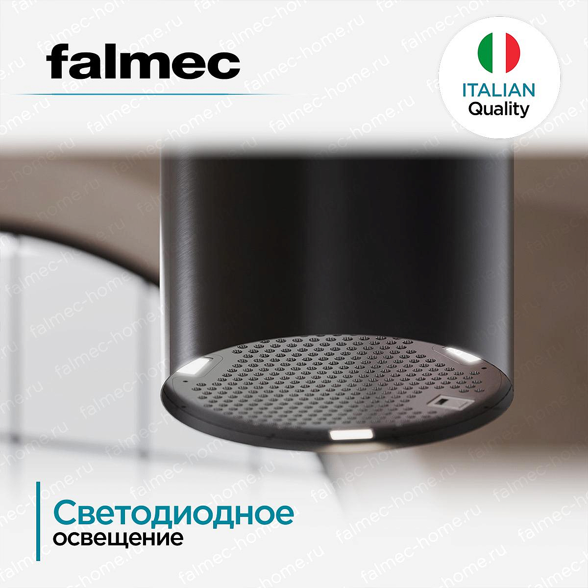 Вытяжка Falmec POLAR Isola Black 35 (800) выполнена из нержавеющей стали с черным покрытием. Она будет прекрасно выглядеть на протяжении многих лет. Островная конструкция монтируется на потолок. Вы можете установить ее в любой части помещения. Благодаря стильному лаконичному дизайну, прибор хорошо сочетается с любыми современными интерьерами. Управление осуществляется с помощью электронных переключателей. Кнопки расположены на фронтальной панели, это удобно. Вы без труда настроите нужный режим. Светодиодная подсветка яркая, долговечная и экономичная. Лампы не нагреваются во время работы. Можно отрегулировать цветовую температуру и сделать освещение «теплым» или «холодным».