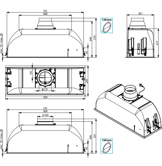 Схема встраивания для кухонной вытяжки Falmec GRUPPO INCASSO PLUS 70 BK