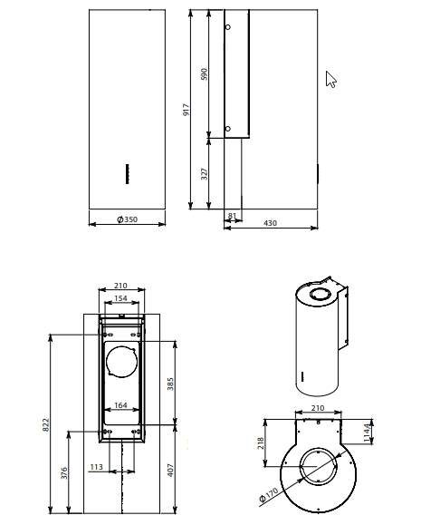 Схема встраивания для кухонной вытяжки Falmec POLAR EVO X