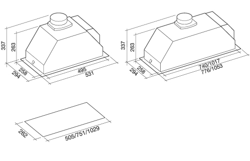 Схема встраивания для кухонной вытяжки Falmec GRUPPO INCASSO STEEL 70